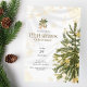 Elégante Gold Christmas Tree Fête Invitation. Arbre de Noël, flocons de neige et lampes à cordes blanc et or. Cet invitation peut être facilement customisé avec les détails de votre événement.