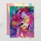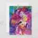 Nocturne vénitien coloré avec un caractère expressif et romantique : joueur de violon fantaisiste avec des costumes roses fuchsia scintillants et emplumés et un hibou drôle sous la lumière de la lune, avec une belle rose rouge dorée au verso de la carte. Peinture à l'aquarelle dans des couleurs vives rouge, vert, bleu, jaune, paillettes dorées, inspirée de Piero (Pierrot), la Comédie de l'Art (Commedia dell'arte) et le Carnaval de Venise. C'est une belle carte d'annonce pour les vacances, les fêtes costumées de Mardi Gras, les occasions spéciales, les fêtes d'anniversaire d'enfants, les 16 ans, le bal masqué du Nouvel An, la Saint-Valentin, les anniversaires, les rassemblements, à peu près n'importe quel événement que vous