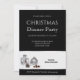 Une élégante invitation au dîner de Noël noir et blanc avec des ornements de Noël argentés.