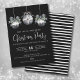 Invités Invitations à votre fête de vacances avec cette invitation chic et minimaliste à l'ornement de Noël, maintenant avec un arrière - plan noir audacieux et un texte blanc immaculé pour un look moderne et frappant. L'avant présente trois élégantes aquarelles noires et blanches, agrémentées de délicats détails de verdure à feuillage persistant et d'arcs, capturant l'esprit festif avec raffinement. Un mélange élégant de script et de typographie serif ajoute à l'atmosphère élégante mais ludique. Sur le dos, les rayures noir et blanc offrent un contraste tendance, et les couleurs rayées et le texte peuvent être entièrement customisés pour correspondre à votre thème de vacances unique. Parfait pour tout rassemblement de vacances - que ce soit une réunion de famille décontractée, une fête de bureau ou une célébration formelle - cette invitation est entièrement personnalisable. Vous pouvez modifier les couleurs et le texte en fonction de votre vision, y compris des options comme "Joyeux Vacances" ou "Bonnes Fêtes" si vous préférez. Disponible sous forme d'invitation imprimée ou de fichier numérique téléchargeable pour un partage aisé avec vos invités ! Elégant Noir Noir Fête Invitation Aquarelle Ornements Style Chic Grandes