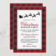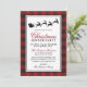 Red Buffalo Plaid Rustic Christmas Dinner Party Invitation avec Père Noël et Reindeer