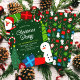 Invités Invitations à votre fête de Noël avec cette mignonne invitation de vacances vertes avec le Père Noël, bonhomme de neige, cadeaux, sucres de canne, arbres de Noël, ornements, cadre enneigé et un joli motif à l'arrière.