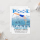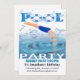 C'est une invitation pour la fête d'anniversaire de la piscine d'un garçon. L'invitation montre un garçon plongeant dans une piscine étincelante. Le mot "POOL" dans le texte de titre présente des tubes intérieurs dans le cadre de sa conception. De plus, un ballon de plage bleu et blanc dans l'eau est le point central de cette invitation à la fête d'anniversaire de piscine.