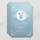 Dîner de répétition moderne avec un cadre floral blanc dainty avec un set de table de dentelle vintage, assiette de dîner avec un couteau, fourchette & cuillère enveloppée d'un joli arc bleu, sur un arrière - plan bleu sombre. Retournez l'invitation chic de notre dîner pour voir une couleur assortie pour une touche spéciale. Disponible dans notre boutique dans un large assortiment de couleurs mariages populaires et est parfait pour une répétition de printemps, une fête de répétition d'été, un dîner de répétition d'automne ou un dîner de répétition d'hiver.