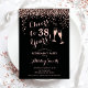 Elégante invitation à la retraite pour hommes ou femmes. Carte Invitation en or rose noir et faux parties scintillant. Caractéristiques typographie de police de caractères classe, verres de champagne et confetti. Salutations à la retraite ! Personnalisez avec vos propres détails. Peut être customisé à montrer n'importe quelle année. Imprimé Zazzle invitations ou télécharger instantanément le modèle numérique. Parfait pour une retraite élégante.