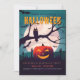 Zombie de style vintage éffrayant Halloween scène de cimetière invitation avec une pleine lune, chauves-souris, un hibou sage, un grand citrouille ghoulish orange jack o'lantern, et déplaisantes mains de zombie qui s'approchent du sol. Invitation tes amis pour une soirée cocktails et costumes cet Halloween. Customisez facilement tous les détails pour avoir des amis pour un bon moment effroyable.