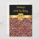 Cette invitation à la fête d'anniversaire élégante et glamour comporte un arc doré et un ruban avec des taches empreintes de léopard roses et or. Le texte combine écriture manuscrite et polices sans serif modernes pour un look élégant et sophistiqué.