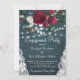 Soirée d'hiver rustique et élégante modèle d'invitation sur un tableau bleu marine foncé avec un beau bouquet de rose de vin bordeaux et de pivoine blanche avec feuillage vert chasseur, cordes de lumières scintillantes blanches, coins dentelles et un script de typographie chic. ++++++++++++++++++++ Facile à personnaliser avec vos détails ! +++++++++++++++++++++ L'invitation est adaptée à l'élégance de la campagne hivernale / ferme / gîte / fiançailles de Noël ou autres fêtes de couple.