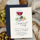 Soirée du vin et du fromage Invitation de la partie, décontracté et élégant dans le design avec l'illustration aquarelle. L'invitation propose des verres de vin rouge avec du fromage, du raisin, des roses de pin et un script manuscrit. Un joli design romantique pour célébrer le couple heureux. Pour plus de choix, consultez ma collection Invitations de la partie Engagement .