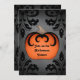 Mon dessin simple d'un citrouille orné contre un arrière - plan damassé gris foncé et noir. Montré ici sur les invitations 5x7 qui sont libellées pour un dîner d'Halloween. Le texte est personnalisable.