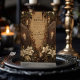 Entrez dans l'ombre avec cette soirée d'Halloween d'inspiration gothique. Doté de cercueils sombres, de bougies scintillantes et de lys blancs sur un fond sinistre, cet élégant morceau donne l'ambiance d'une célébration effrayante mais sophistiquée. Parfait pour ceux qui veulent que leur soirée d'Halloween soit inoubliable.
