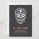 Une éffrayante invitation à la fête d'Halloween adulte chic avec une illustration complexe du crâne de sucre calavera. Personnalisez avec les détails de votre fête en dessous.