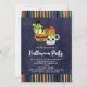 Invitation de fête d'Halloween avec un cupcake d'Halloween avec un gros globe oculaire. Un coquelicot vert en forme de monstre de Frankenstein. Une tasse avec un visage crânien rempli de friandises et de bouc vert gouttant.
