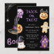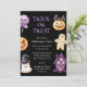 Petits monstres Invitations à une célébration spooktaculaire avec notre Éffrayante-Sweet Halloween Party Invitation. Contre un arrière - plan sombre, ce design ludique est composé d'un mauvais citrouille, d'une chauve-souris éffrayante, d'un mignon fantôme, d'une momie effrayante et de bonbons d'Halloween. Les mots "Trick or Treat" sont écrits de façon fantaisiste dans une police amusante sur le thème de l'Halloween. Idéal pour invitation vos amis enfants à une fête d'Halloween éffrayante et sucrée. Préparez-vous à une inoubliable fête d'Halloween remplie de rire et de bonbons à foison!