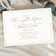 Cet élégant dîner de répétition de mariage Invitation de notre collection de Mariages minimalistes d'or présente un design simple associé à une police de script moderne. Parfait pour toute saison. Pour effectuer des modifications anticipées, sélectionnez Personnaliser -> Modifier à l'aide de l'outil de conception.
