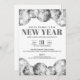Invitation de soirée du Nouvel An noir et blanc. Célébrez la Saint-Sylvestre avec style avec cette élégante invitation de soirée du Nouvel An noir et blanc ! Avec un fond blanc croquant, ce design est rehaussé de grosses boules disco grises en haut et de plus petites boules disco en bas de la face avant pour une touche festive. L'invitation utilise des polices classiques noires et grises en style serif gras pour garder l'apparence moderne et sophistiquée, sans véritable éclat, créant une atmosphère scintillante parfaite pour une soirée du Nouvel An. Le dos est laissé blanc uni pour une finition élégante. Avec des couleurs de texte entièrement personnalisables, vous pouvez adapter ce design au thème de votre événement. Idéal pour une célébration chic du Nouvel An, un compte à rebours de minuit ou une réunion animée entre amis, cette invitation crée l’ambiance parfaite pour une nuit
