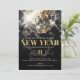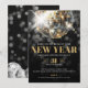 Invitation à la soirée du Nouvel An Black Gold. Fêtez la nouvelle année avec cette invitation chic pour la soirée du Nouvel An Black and Gold ! Avec une boule disco dorée et noire stylée en haut de la face avant et des boules disco assorties plus petites en bas, cette invitation apporte toutes les vibrations festives - pas de scintillement ou de brillance, juste des couleurs franches pour un look raffiné. Le fond noir épuré se marie parfaitement avec un mélange de polices serif blanches et dorées, ajoutant de l'élégance et du contraste. Toutes les couleurs, y compris le fond et les nuances de police, sont entièrement personnalisables pour correspondre au thème de votre événement. Idéale pour une soirée glamour du Nouvel An, un compte à rebours de minuit ou une fête dansante amusante avec des amis, cette invitation crée l'ambiance parfaite pour une célébration inoubliable