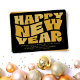 Invitation Soirée du Nouvel An fun rétro tendance or noir