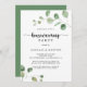 Cette invitation à la fête de l'eucalyptus pour un délice vert est parfaite pour une simple fête de maison neuve. L'aménagement comprend des branches et des feuilles d'eucalyptus botaniques élégants dessinés à la main dans des aquarelles.
