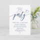 Marquez le début de votre pour toujours avec élégance en utilisant notre carte d'invitation de cérémonie d'élopement de mariage sur le thème du bleu marine contemporain, "Happily Ever After Party". Parfaite pour les couples qui prolongent leur occasion joyeuse, cette invitation dégage de la sophistication avec une touche de ludicité, préparant le terrain pour un événement mémorable. Ornée d'un thème de design de script moderne intemporel, elle ajoute une touche de charme raffiné à vos festivités. Conçue par TeeshaDerrick, cette invitation promet de capturer magnifiquement votre histoire d'amour.