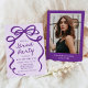 Célébrez votre diplômé en style avec cette invitation de remise de diplômes Modern Elegant Purple Bow ! Doté d'un arc violet audacieux encadrant élégamment les détails de la fête sur un arrière - plan violet clair, ce design dégage charme et sophistication. La police de caractères mauve à la mode ajoute une touche moderne, tandis que le dos présente la photo verticale de l’étudiant, avec un espace pour personnaliser son nom d’école et son année de diplôme. Parfait pour les fêtes de fin d'études secondaires et collégiales, cette élégante invitation donne le ton d'une célébration mémorable !