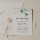 Cette soirée rustique à fleurs d'or avant le dîner de répétition est parfaite pour une simple nuit avant que la famille mariage et les amis ne se réunissent pour le dîner. Cette conception artistique présente des feuilles d'or dessinées à la main et des feuilles d'aquarelle vert d'eucalyptus, une beauté naturelle inspirante.