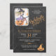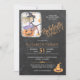 Drôle élégant Halloween gris foncé chalkboard typographie bachelorette modèle d'invitation avec une sorcière d'aquarelle dans une robe violette et casquette noir assis sur un citrouille orange et volant Remplissez vos informations dans les spots, Vous pouvez choisir de le customiser de nouvelles polices et couleurs de lettrage. — L'invitation convient à une soirée chic de sorcière à thème Halloween. — Si vous avez besoin d'aide pour la customiser, s'il vous plaît contactez-moi!