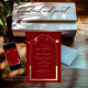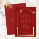 Cartes d'invitation de mariage Soleil Lune Étoiles Astronomie Espace avec un cadre doré sur fond rouge foncé. À l'intérieur, vos informations d'invitation de mariage personnalisées. Personnalisez en modifiant le texte dans les zones de texte. Conçu pour vous par ©Evco Studio www.zazzle.com/store/evcostudio