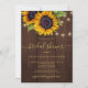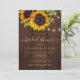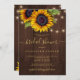 Soirée rustique et chic de la douche nuptiale élégante invitation modèle sur un arrière - plan en bois de grange marron avec un bouquet de tournesols en or jaune et élégant script de calligraphie en faux or. +++++++++++++++Facile à personnaliser avec vos détails ! ++++++++++++++ L'invitation est adaptée pour le jardin extérieur d'été ou d'automne, ferme, grange, jardin douches rustiques de la campagne, brunch ou déjeuners fêtes.