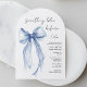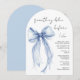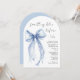 Elegant arch-shaped bridal shower invitation featuring a blue coquette bow watercolor and "something blue before I do" showcased in a chic calligraphy script.