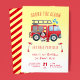 Créez votre propre Sound the Alarm Firetruck 1st Birthday Invitation! Personnalisez ce design avec votre propre texte. Vous pouvez customiser cette conception en cliquant sur le bouton "Modifier les détails" si vous le souhaitez.