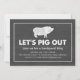 Invitations amis et familles à votre cuisine d'été avec ces invitations amusantes en tableau noir & blanc ! Design dispose d'un arrière - plan de tableau noir gris brossé avec du texte et des illustrations en blanc, y compris un cochon blanc mignon — pourrait vouloir laisser les végétariens hors de ce rassemblement — et "Let's Pig Out" dans une police de caractères détruite rustique.