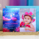 Cette invitation utilise le bleu et le rose comme palette de couleurs principale. La profondeur dans le design est prise en compte en faisant apparaître les poissons très éloignés du point de vue principal. Des effets d'éclairage sont utilisés en particulier dans la queue de sirène, pour en faire la star du design
