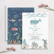 Ton bébé en tourne un ! Invitation vos invités spéciaux avec cette adorable invitation moderne sur le thème de la mer avec une baleine peinte à la main, corail, et animaux de l'océan, avec typographie de script lettré à la main. L'arrière de la carte présente une illustration sous la mer. Copyright Invitations élégants, tous droits réservés.