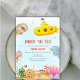 Sous le thème baby shower marin, baby shower nautique, thème du baby shower sous-marin, célébrer le baby shower à venir avec notre mignon sous-marin nautique rustique moderne aquarelle, dauphine, méduse, corail, étoiles de mer, phoque et d'autres animaux de l'océan en couleur bleue de l'océan, arrière avec motif de bandes bleu marine. Vous pouvez personnaliser votre propre texte et votre propre couleur via "personnaliser ce design".