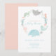 Ce baby shower à thème d'animaux de mer est composé d'une baleine, d'un requin tigre, d'une gelée, d'une tortue de mer et d'un hippocampe, le tout nageant en cercle avec une douce coquille rose inverse.