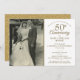 Personnalisez avec votre photo de mariage préférée et vos souvenirs spéciaux de 50 ans d'anniversaire de mariage doré, des faits et des détails de célébration dans une typographie dorée chic. Le verso présente des confettis en forme de cœur dorés. Conçu par Thisisnotme©