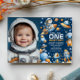 Add your baby’s photo to make the invitation even more special — the perfect way to highlight your little explorer’s first trip around the sun! With its navy blue and orange color tones, this gender-neutral invitation suits both boys and girls who love all things space.