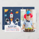Lindo diseño de Invitacion de Cumpleaños de Niño con Tematica Espacial con Imagenes de un despegue de Nave Espacial y Astronautas!. Ideal para festejar a tu Hijo!! Personalice esta invitación de cumpleaños Espacial añadiendo sus propios detalles de evento asi como la foto favorita de su hijo *Consejo importante recorte la foto de su hijo en forma rectangular para mejores Resultados.