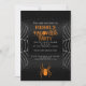 Spider web noir blanc Halloween fête Invitation. Personnalisez l'invitation de Hallow avec la toile d'araignée blanche Halloween. Avec texte blanc et araignée orange.