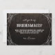 Goth sera-tu ma carte de demoiselle d'honneur en noir en détresse avec des polices de goth et des toiles d'araignée dans les coins.