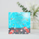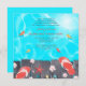 Une invitation au thème estival époustouflante représentant des eaux turquoise avec des poissons colorés sous une promenade en planches. Une paire de tongs et une collection de coquillages et de fleurs tropicales se trouvent au bord de l'eau. Parfait pour n'importe quelle occasion à la plage.