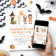 Faites de l’anniversaire de votre enfant un événement magique grâce à cette Invitation à la fête d’anniversaire Spooktacular d’Halloween - parfait pour une fête amusante et sans peur ! Avec d'adorables enfants dessinés à la main en costume, avec de doux détails d'Halloween comme des citrouilles, des ballons, des chauves-souris, et un mignon chat noir, cette invitation mêle des feuilletons cosy avec un plaisir éffrayant et ludique. La douce aquarelle et les tons orangés chaleureux confèrent un look accueillant et idéal pour toute fête d'anniversaire d'octobre. Entièrement personnalisable et parfait pour un bain à thème astucieux ou gourmand, votre petit va adorer !