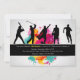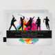 L'invitation idéale pour les sportifs de tout âge. La carte présente cinq silhouettes jouant au baseball, au golf, au football, au basket et au jogging. Une lueur de couleurs vives crée le arrière - plan.