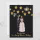 Carte unique de sauvegarde de date pour un mariage d'Halloween. Le design est une carte noire avec une mariée et un marié squelette, des étoiles et des fantômes. Merci à Pixabay et Creative Fabrica pour certains des éléments du design. Les mots au dos de la carte peuvent être modifiés.