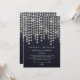 Belle faire-part de mariage bleu foncé avec lumières à cordes verticales brillantes suspendues en forme d'étoile et formulation d'invitation informelle. Parfait pour les mariages du soir ou de minuit sous les étoiles !