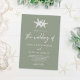 Ce faire-part de mariage moderne minimaliste de plage verte à la sauge est parfait pour les mariages à thème côtier, et a deux étoiles de mer au sommet, et tendance écriture de script calligraphie.