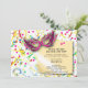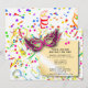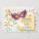 Confetti au verso de cette carte d'invitation de fête. Des bandeaux et des confettis sur le devant de la carte. Un masque et une note pour venir à la fête. Célébrez le Nouvel An avec cette amusante invitation de la fête du Nouvel An. Remplissez les informations pour votre rassemblement.