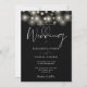 This elegant script black and white wedding invitation, featuring pretty string lights, can be personalized with your information in chic typography with your special photo on the reverse. Designed by Thisisnotme©