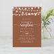 Cette corde illumine l'invitation de mariage en terre cuite est parfait pour une simple soirée post-elopement. Le design comprend de belles lampes à cordes peintes à la main dans un arrière - plan en terre cuite. Les cartes RSVP sont vendues séparément, ou vous pouvez les détails RSVP à l'arrière ou au bas de la carte.